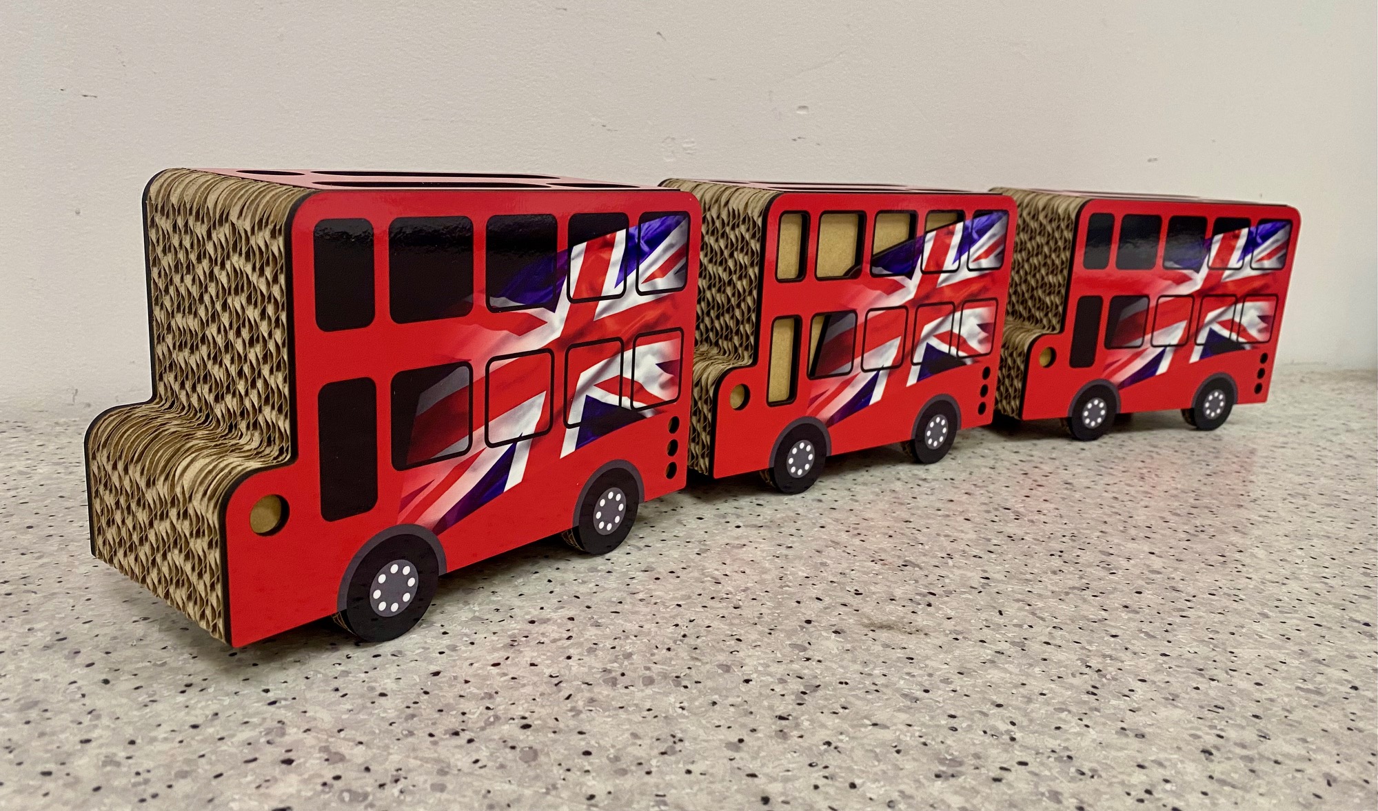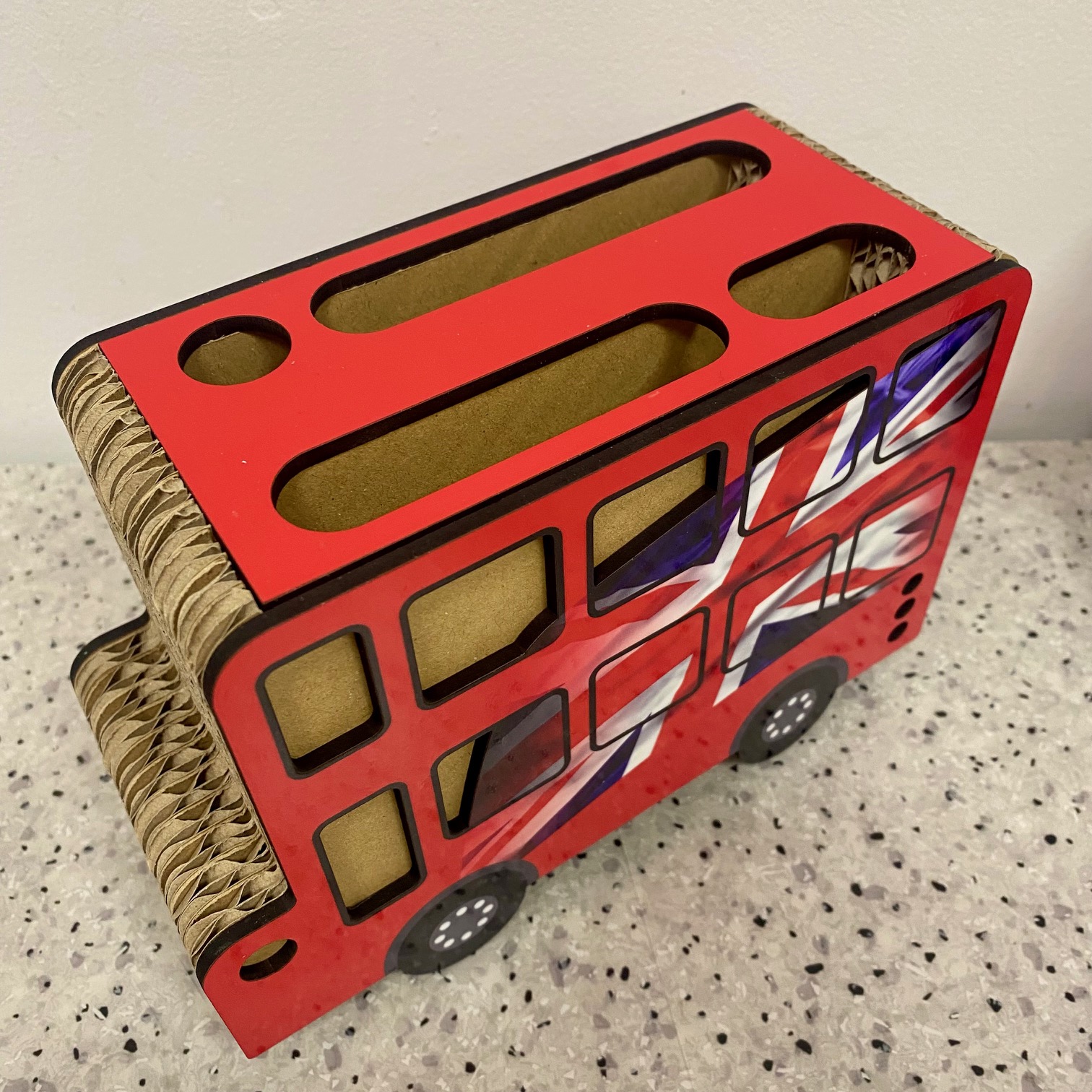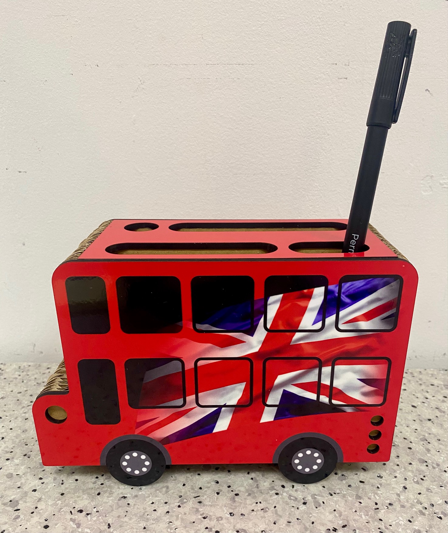Oryginalny przybornik na biurko w kształcie piętrowego autobusu.